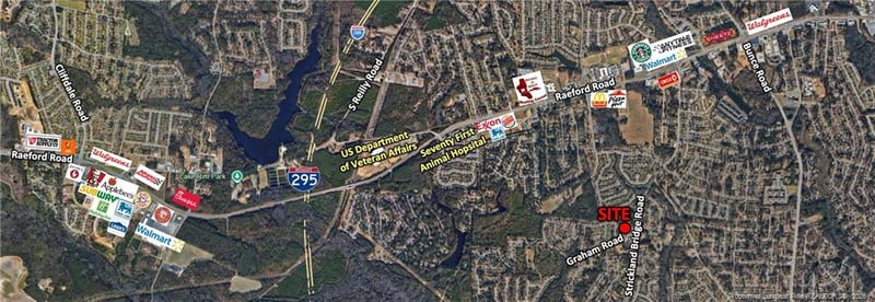 Listing details for Graham Rd, Fayetteville, NC 28304 : Prime opportunity to secure a highly visible commercial corner site with excellent exposure to approximately 12,000 vehicles per day (NCDOT 2022). This 1.25-acre parcel offers 330 feet of road frontage, providing outstanding access and flexibility for a variety of commercial uses. The property is fully cleared and level. Situated along a city-maintained road and zoned LC - Limited Commercial; this site is ideally positioned for many different commercial uses.