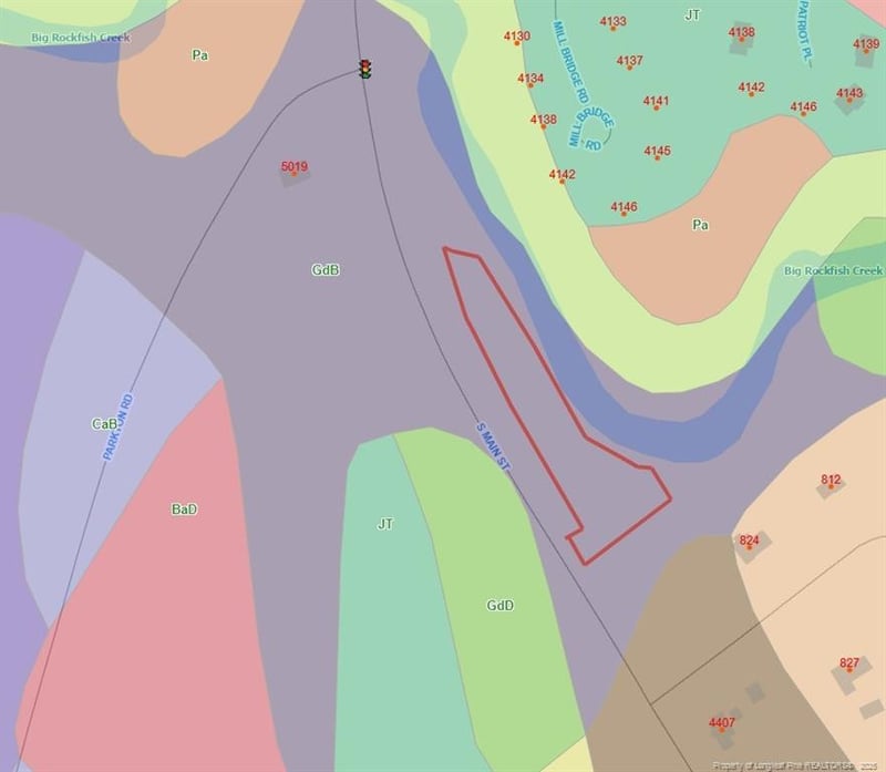 Listing details for Main St, Hope Mills, NC 28348 : Three lots making up 1.26 Acres. The lots sit on S Main Street Hope Mills. The property backs up to Big Rockfish Creek on the high side. A very small section in the 100 yr flood pain. See attached maps. Priced below the Tax value. $44,685.