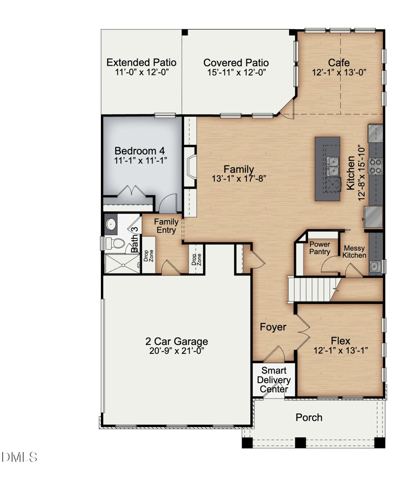 The Apex plan offers approximately 2,999 square feet with 4 bedrooms, 3 bathrooms, and a 2-car sideload garage, thoughtfully designed to balance everyday functionality with standout architectural details. The open-concept main living area flows seamlessly between the kitchen, café, and family room, creating an ideal space for both entertaining and daily living. A vaulted café ceiling fills the space with natural light, adding volume and warmth to the heart of the home.