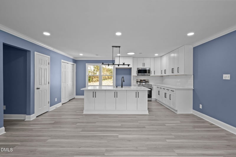 Listing details for 1 Westbury Pl, Durham, NC 27707 : This beautifully renovated ranch-style home blends modern design with comfortable living in a highly convenient location. New roof! Offering three bedrooms and two full bathrooms, the home features a spacious open floor plan that creates an inviting atmosphere perfect for both everyday living and entertaining.