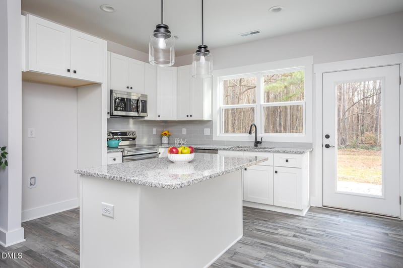 This 3-bedroom, 2-bath gem delivers on quality, style, and room to breath! Located on a 1+ acre lot, only 10 minutes from downtown Louisburg you get the best of both worlds. The home includes custom touches that elevate your lifestyle with HIGH QUALITY FINISHES including a generously sized kitchen with sleek granite counters, tile backsplash and SOLID WOOD/SOFT CLOSE cabinets! 20 mil LVP flooring throughout the main living area offers both durability and style. The open-concept layout seamlessly connects the kitchen, dining, and living areas, creating a perfect space for entertaining and everyday living. Each of the three bedrooms offers ample space and comfort, while the two bathrooms are designed with quartz counters, upgraded plumbing fixtures and the same solid wood cabinets. Be sure to notice the quality craftsmanship of the solid pine casings on windows and doors as well as the upgraded craftsman style doors. 9 foot ceilings elevate the feel of the entire home! Large walk in laundry room allows for lots of extra storage as well as HUGE attic storage space. Adding to the appeal is a one-year builder warranty, ensuring peace of mind and confidence in your new home.