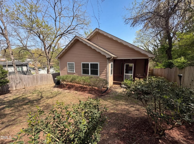 Listing details for 1007 Hazel St, Durham, NC 27701 : Welcome to 1007 Hazel St, where a striking vaulted ceiling creates an open and airy atmosphere throughout the home. The kitchen is thoughtfully designed with a stylish accent backsplash and stainless steel appliances, blending function with modern appeal. At the heart of the living area, a fireplace adds warmth and character, while the primary bathroom is equipped with dual sinks for added convenience. A covered patio extends the living space outdoors, overlooking a fenced backyard, and the home sits on a level lot, offering a well-balanced and cohesive setting.