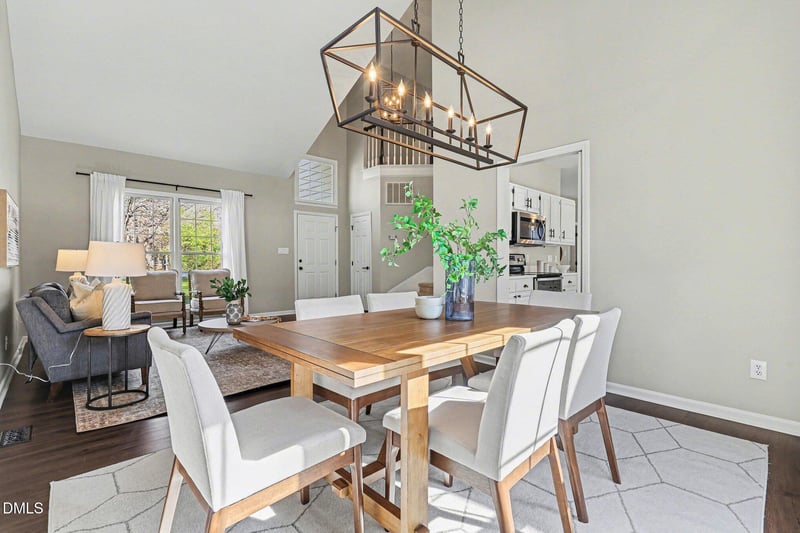 Listing details for 1010 Sturbridge Dr, Durham, NC 27713 : Some homes just have it and 1010 Sturbridge is absolutely that home. Tucked on a quiet cul-de-sac, this Fairfield charmer has been thoughtfully updated and is genuinely move-in ready. As you enter the home you're immediately greeted by soaring vaulted ceilings, a stunning chandelier, and an open dining and living room layout that flows beautifully. Around the corner is the updated kitchen with quartz counters, stainless appliances, hardwood floors. Upstairs, the primary suite is a personal retreat with vaulted ceilings, tons of natural light, and an en-suite that honestly looks like a hotel spa with floor-to-ceiling Carrara marble, glass walk-in shower, double vanity, herringbone floors. The hall bath is no slouch either, with black hardware and subway tile that hit just right. Out back? Low to no maintenance composite deck, custom paver patio, fire pit, privacy fence, mature trees. You're going to want to spend a lot of time out there. Roof, HVAC, and water heater are all 2016, so the big stuff is handled. Two-car garage, main floor laundry, and HOA dues are very reasonable for a ton of amenities like a pool, clubhouse, tennis, and more. Honestly, come see for yourself, you'll get what I mean immediately.