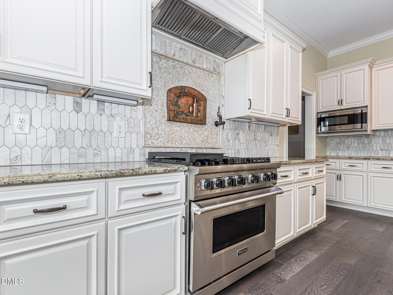 The impressive outdoor living area is ideal for entertaining, featuring a fully covered outdoor kitchen and screened-in porch overlooking the pond - perfect for morning coffee or evening gatherings. The gourmet kitchen shines with granite countertops, a custom tile backsplash, a hand-hammered copper sink, a six-burner gas range, and high-end Viking appliances.