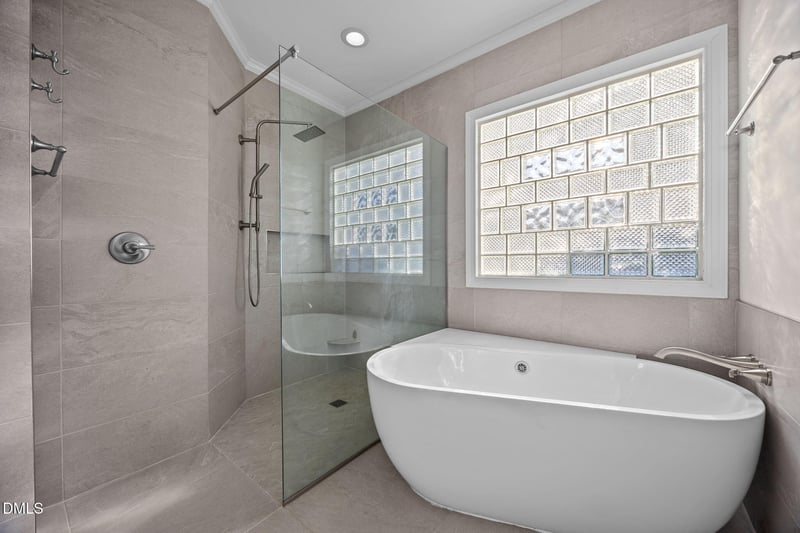 Bathtub/Shower Combination, Bookcases, Ceiling Fan(s), Crown Molding, Eat-in Kitchen, Entrance Foyer, Kitchen Island, Pantry, Quartz Counters, Recessed Lighting, Soaking Tub, Walk-In Closet(s) and Walk-In Shower