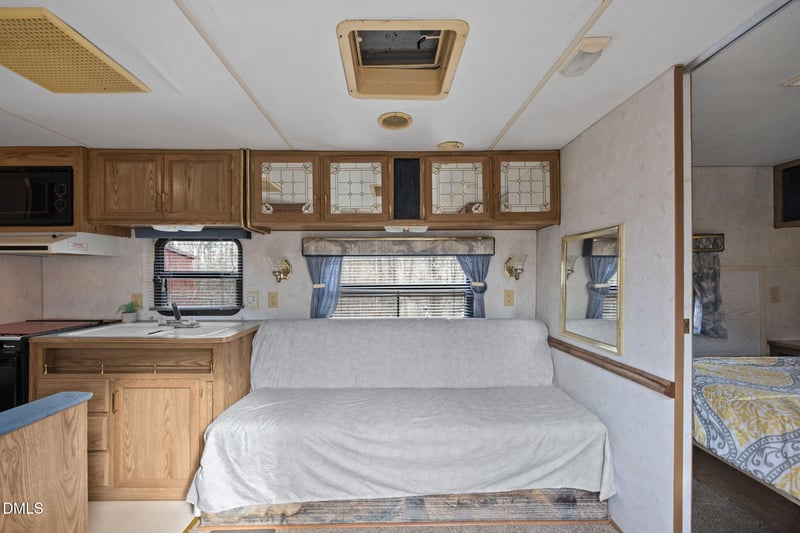 Listing details for 102 Indian Cv, Louisburg, NC 27549 : Don't miss this opportunity to own a 35' Prowler travel trailer situated on a partially wooded lot in the desirable gated Lake Royale community. The property already includes a septic system, making it ideal for weekend getaways, seasonal use, or future plans. Enjoy the privacy of mature trees while being just minutes from Lake Royale's many amenities, including boating, fishing, beaches, clubhouse, pool, and recreational activities. Whether you're looking for a peaceful retreat or an affordable way to enjoy lake living, this property offers exceptional value and potential. Schedule your showing today—opportunities like this don't last long!