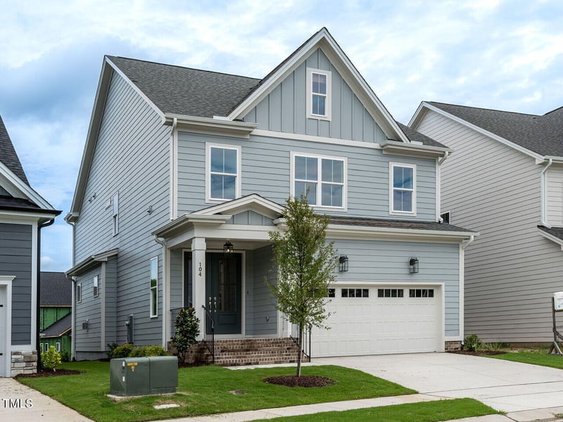 Listing details for 104 Noble Deer Way, Wendell, NC 27591 : Local award-winning Green-Home builder, Homes by Dickerson, has begun construction on The Meadowmont -American Farmhouse Elevation. The double door grand entryway greets you as you approach the Meadowmont. This plan features a Guest Suite on the main level with a spacious open kitchen/family/dining area. Enjoy the view of your backyard while doing the dishes and benefit from a clean island with all the space for entertaining. The fireplace is a focal point with built-ins flanking either side, creating a cozy-at-home feeling. Enjoy your early morning cup of coffee or relax with friends in the evening on the spacious covered screen porch with a vaulted ceiling. On the 2nd floor, there is a open loft landing that leads to a large Rec Room, the Owner's Suite, 2 bedrooms with a double vanity full bathroom. Enjoy all the incredible amenities of Wendell Falls which include two pools, a 24-hour fitness center, over 10 miles of trails, several parks, and playgrounds. Super convenient quick drive to Treelight Square with Publix, boutique shops, services, and dining options that will please everyone. You are going to LOVE it here!