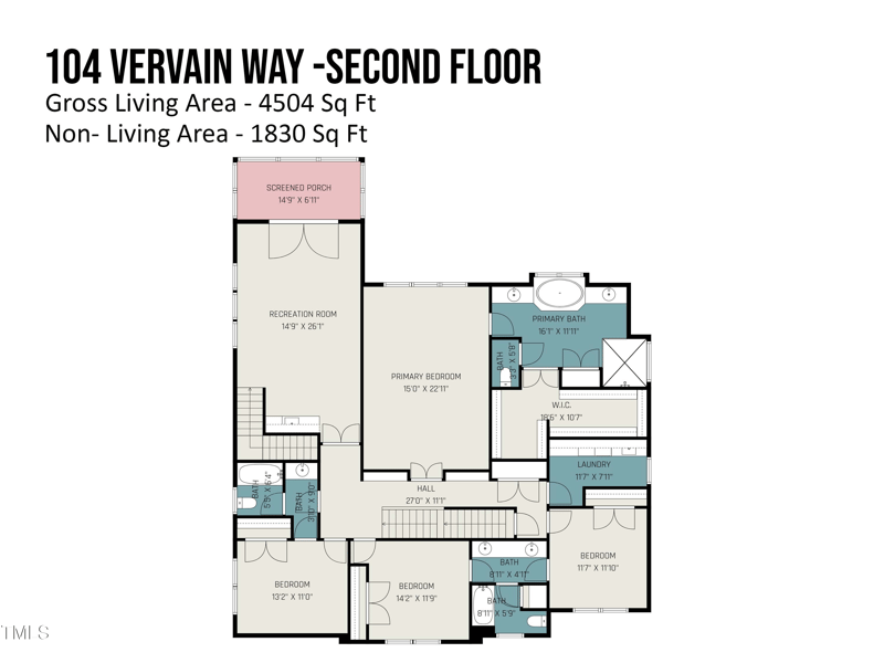 104 Vervain Way, Holly Springs, NC 27540 and is listed for sale at $1,580,000.00. This home was built in 2014, contains 4504 square feet of living space, and sits on a 0.57 acre lot. This residential home is priced at $350.80 per square foot.