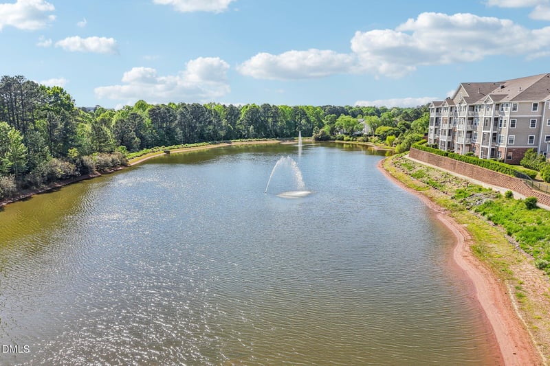 Listing details for 10411 Rosegate Ct #205, Raleigh, NC 27617 : Located in The Cascades at Brier Creek Country Club, this impeccably maintained, lightly lived-in condo offers a relaxed, worry-free lifestyle in a prime setting. A secure entry building welcomes you into a lovely foyer & elevator building. Savor the peaceful pond views and truly spectacular sunsets from your private covered porch. Delight in dining al fresco in this charming retreat overlooking a beautiful fountain & quaint gazebo. An 8-foot slider creates a seamless connection between indoor and outdoor spaces, perfect for relaxed, low-effort living with the minimal upkeep of a condo. Upon entry you'll find open-concept living with a true dining room (w/ crown molding, tray ceiling, & chair rail) and a spacious living room complete with a cozy fireplace & ample natural light. Hardwoods run through the main living areas, with carpeted bedrooms for added comfort. The efficiently configured kitchen features cherry cabinetry, solid surface countertops, and stainless steel appliances. A split bedroom plan provides privacy, with a large primary suite that easily fits a king-sized bed and includes an ensuite bath with double vanity, soaking tub, and separate walk-in shower. The secondary bedroom is also generously sized with access to a full private bath. Additional highlights include ample in-unit storage, private ground-level storage space, a detached one-car garage bay, and an assigned parking space. Enjoy the ease of country club living with a social membership offering access to the community pool, tennis, fitness and a vibrant calendar of events. All just minutes from premier shopping, dining, and entertainment, as well as 540 & the airport. Just unpack your suitcase and live the good life!