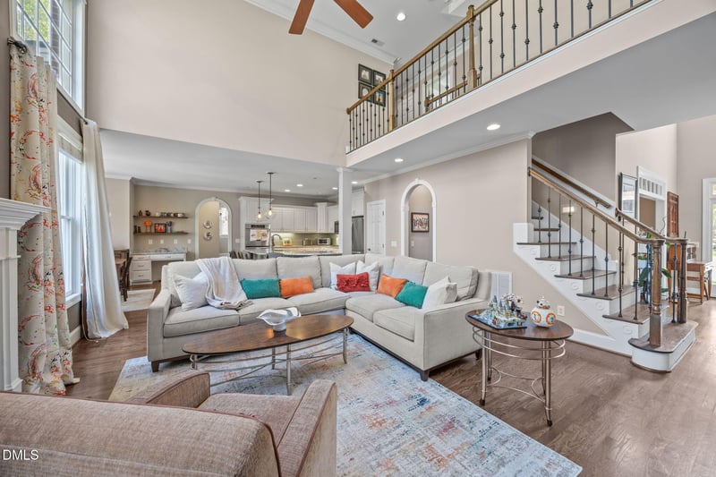 Listing details for 105 Bailey Ridge Dr, Morrisville, NC 27560 : Bright, open, and beautifully updated, this all brick executive home in coveted Weston Estates offers luxury living with exceptional convenience. With all hardwood floors, a first floor primary suite, prime central location and a private, wooded backyard, this home delivers the features buyers want most. Step into an inviting, sun filled layout anchored by a dramatic family room boasting 20 foot ceilings and a wall of windows that flood the space with natural light. The adjacent updated kitchen features high end appliances, abundant cabinetry, and a custom center island with bar seating. A spacious breakfast nook overlooks the serene backyard--perfect for morning coffee. The primary bedroom on the main floor is a standout feature, offering comfort and privacy. French doors open directly to the three season porch, creating a seamless indoor outdoor retreat. The ensuite bathroom includes a jacuzzi tub, separate shower, dual vanities, and a custom walk in closet. A formal dining room provides an elegant setting for entertaining, while the main level office offers a quiet workspace ideal for today's lifestyle. Extensive recent upgrades elevate the home throughout: a new roof (2024), hardwood floors on both levels, new flooring in bathrooms, fresh paint, crown molding, custom closets, updated kitchen and laundry room, remodeled bathrooms, new light fixtures, upgraded door hardware, and wrought iron stair rails. Upstairs, three generously sized bedrooms offer comfort for family or guests. A large bonus room--accessible via a second staircase--provides flexible space for a playroom, gym, or media room. Outdoor living shines here. Enjoy the private, wooded backyard from the three season porch, deck, or patio--each space designed for relaxation, entertaining and bird watching.