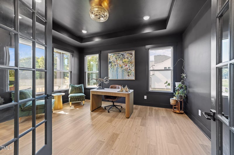 • 9-foot doors, custom trim, and abundant recessed lighting
