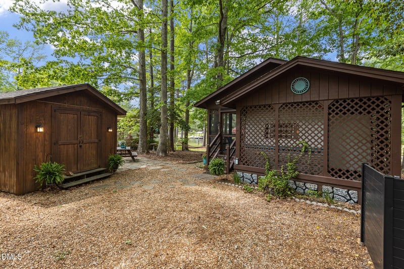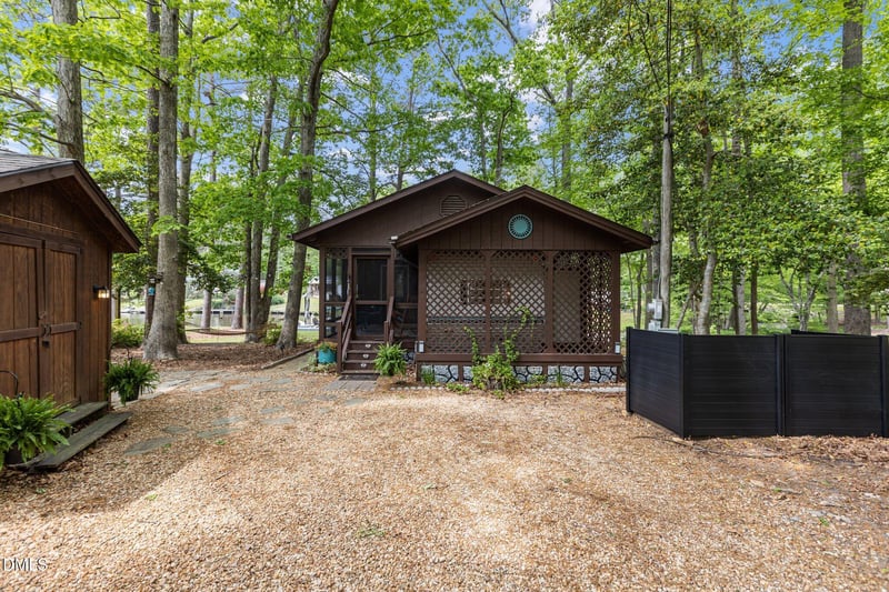 Listing details for 106 Desoto Dr, Louisburg, NC 27549 : Enjoy lakefront living with this beautifully maintained camper with room addition and screened porch. This waterfront wooded property is located in a quiet cove in the private gated community of Lake Royale and comes with ALL the water toys that you will need to enjoy the lake. Pontoon boat with new motor, jet ski on floating dock, and even the kayaks with a kayak rack are all included!! The 1 bedroom/ 1 bath camper comes furnished with everything you need to start living the lake life indoors and out. The camper features a roof over, a screened porch, and a room addition that can be used as a second bedroom or additional living space. Outside you will find a beautifully landscaped property featuring a flag stone patio with picnic table and grill. There is a separate area closer to the water with a stone firepit with chairs and a view down the cove to the main part of the lake. You can store all your extra supplies in the wired shed located on the property. Lake Royale offers resort-style amenities, including a private police force and full-time maintenance department for the common areas. Residents enjoy access to the 345-acre lake for boating and fishing, tennis court, golf course, swimming pool, beaches, playgrounds, basketball, pickle ball, a clubhouse, and more. This is perfect as a weekend getaway. Come see it today!