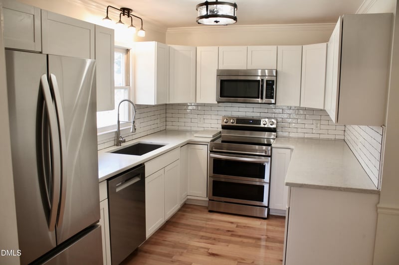 Listing details for 106 Fawn Cir, Mebane, NC 27302 : Tucked away in one of Mebane's nicest established neighborhoods, this cozy cottage offers the peaceful feeling of a mountain retreat without the long drive. Surrounded by mature trees and natural landscaping, the home feels like a hidden escape, where mornings begin with birdsong and evenings settle in with sunsets filtering through the mature trees onto the rocking chair front porch. Inside, warm wood floors coupled with soft neutral tones create a welcoming, cozy atmosphere. The living space is perfect for curling up with a book or enjoying a quiet evening by the fireplace, while the updated kitchen offers quartz countertops and stainless steel appliances for a modern touch. Step onto a private deck covered with a vine-filled pergola overlooking a stunning back yard with manicured walking paths and you'll feel miles away from everything, yet still walking distance to downtown Mebane. Notable updates include an encapsulated crawlspace with commercial dehumidifier and the water heater was replaced in 2024. Showings begin on Friday March 20.