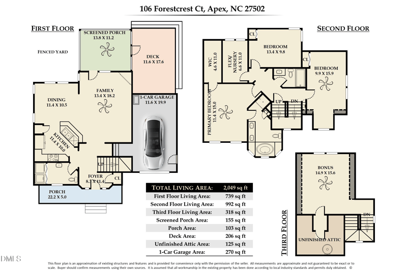 This beautiful 3 beds 3 baths home is located at 106 Forestcrest Ct, Apex, NC 27502 and is listed for sale at $575,000.00. This home was built in 2001, contains 2049 square feet of living space, and sits on a 0.17 acre lot. This residential home is priced at $280.62 per square foot.