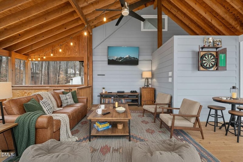 Listing details for 10848 Leslie Dr, Raleigh, NC 27614 : Tucked away on 1.41 private acres, this exceptional North Raleigh home offers the perfect blend of comfort, entertainment, and peaceful surroundings. The true showstopper is the enormous screened-in porch--an outdoor living dream complete with a relaxing hot tub, big screen TV, and dartboard. Whether you're hosting game day gatherings or enjoying a quiet evening, this space was designed to be enjoyed year-round.