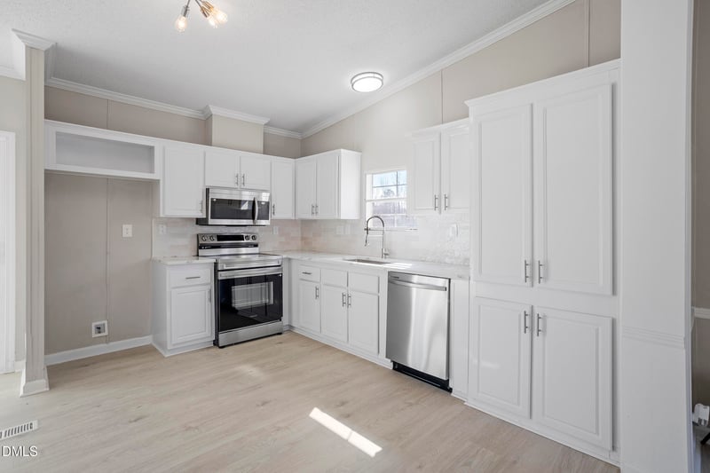 Listing details for 10965 Beaver Dam Rd, Middlesex, NC 27557 : GORGEOUS ONE level living on almost an ACRE with a bright open floor plan and upgrades galore. Features a beautiful kitchen with Stainless Steel appliances. Wide plank laminate hardwood flooring in main living areas; NEW plush carpet & designer paint. Awesome Primary Retreat with dual vanity and walk-in closet. No city taxes or HOA dues. Move in and Enjoy! Stages photos to show homes potential.