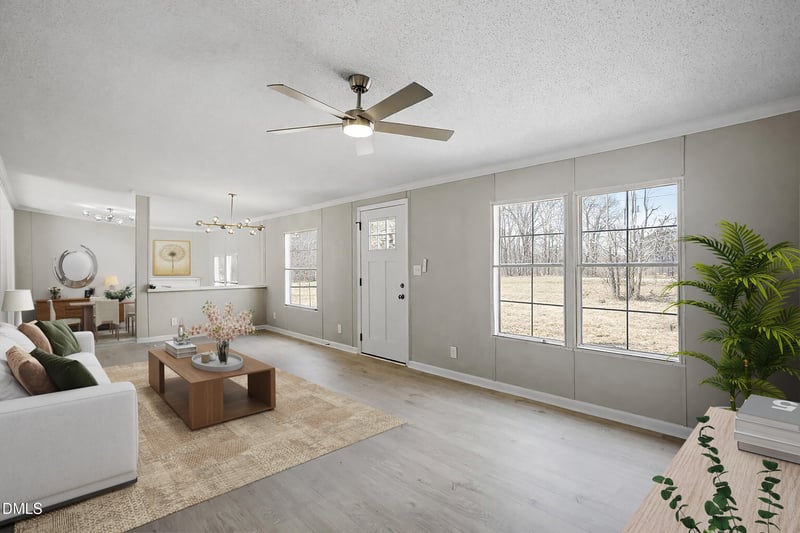 Listing details for 10965 Beaver Dam Rd, Middlesex, NC 27557 : GORGEOUS ONE level living on almost an ACRE with a bright open floor plan and upgrades galore. Features a beautiful kitchen with Stainless Steel appliances. Wide plank laminate hardwood flooring in main living areas; NEW plush carpet & designer paint. Awesome Primary Retreat with dual vanity and walk-in closet. No city taxes or HOA dues. Move in and Enjoy! Staged photos for illustration only, to show homes potential.
