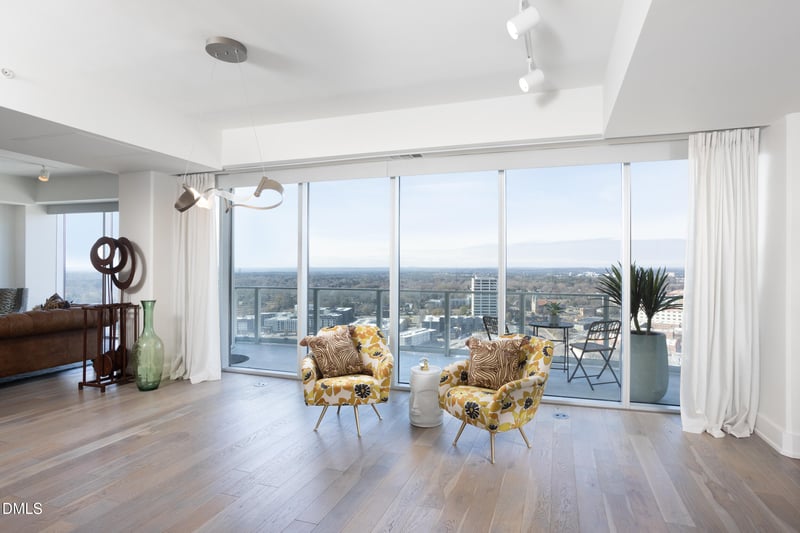 Listing details for 110 Corcoran St #2502, Durham, NC 27701 : Wake up in the clouds and have your breath taken away at sunset as you soak in Durham's gorgeous skyline. Experience luxury living in the heart of Downtown Durham at One City Center. Just steps from award-winning restaurants, The Carolina Theatre, DPAC, Central Park's lively events, and the weekly farmers market, this premier high-rise offers the best of city living. Residents enjoy top-tier amenities, including a state-of-the-art gym, rooftop pool, hot tub, dog run, multiple outdoor grilling and entertainment areas, and a stunning top-floor clubroom with panoramic 360-degree views. Onsite security ensures comfort and peace of mind. In order to maintain the luxury experience residents are accustom to, the HOA has recently approve a facelift for the 28th floor club room to update all the furnishings, replace the outdoor furniture on the 6th floor outdoor area as well as update the security system and cameras. Perched on the 25th floor, featuring floor-to-ceiling, wall-to-wall windows showcasing unparalleled views of Durham, Chapel Hill, and beyond. This west-facing home is perfectly positioned for breathtaking sunsets. The chef's kitchen is equipped with top-of-the-line Wolf appliances, including a gas range and microwave drawer, a Sub-Zero refrigerator, and an in-unit washer/dryer. Thoughtfully designed custom built-ins include a spacious primary closet, a 10-foot buffet, and a beautifully crafted bookcase in the second bedroom, making it ideal as a library, den, or guest room. This exceptional home is truly one of Durham's most unique and sought-after residences. Whether you are enjoying a morning cup of coffee or an evening cocktail, this home offers a feeling of peace and belonging that you really need to experience to understand. We hope you visit this condo in the clouds and see for yourself.