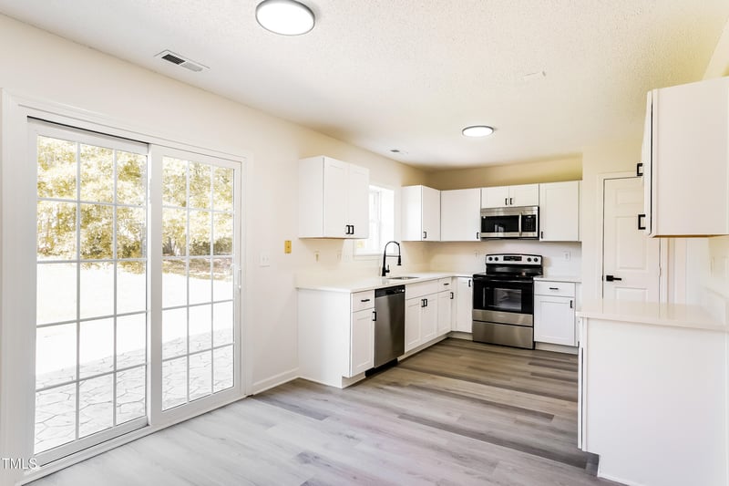 Listing details for 110 Kindlewood Dr, Durham, NC 27703 : This fully refreshed 4-bedroom, 2.5-bath home with a 2-car garage features new exterior and interior paint, LVP flooring, carpet, and updated light fixtures. The kitchen shines with new shaker cabinets, quartz counters, and a stainless steel appliance package including range, microwave, and dishwasher. Bathrooms have been refreshed, making this home stylish, comfortable, and move-in ready.