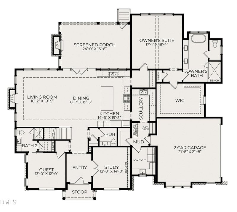 Listing details for 1100 Oldfourth Ln, Durham, NC 27707 : Introducing ''The Julian'' by local, custom builder Homes by Dickerson. This high-performance home is designed for elevated everyday living. The Julian plan offers 4,249 square feet of thoughtfully curated space in the heart of Hope Valley. The main level features a first-floor primary suite, a guest bedroom, and a private study, along with an open-concept kitchen enhanced by a scullery for effortless entertaining. Upstairs, two additional bedrooms and a spacious recreation room provide flexible living and gathering spaces. With four bedrooms, four full baths, and a two-car garage, this home presents a rare opportunity to enjoy custom craftsmanship in the exclusive Oldfourth community.