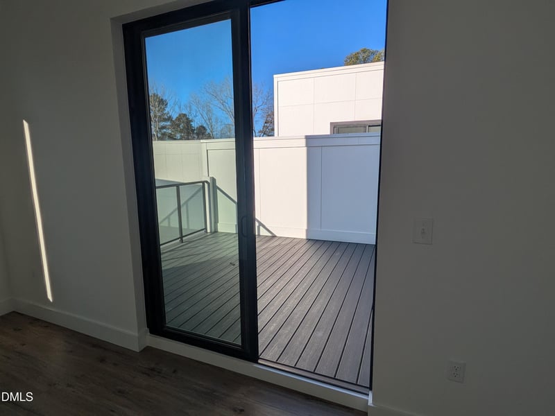 Listing details for 1105 Nova St, Durham, NC 27713 : Townhome with 2 car garage and private rooftop terrace in a highly connected Durham location. This three-level residence is conveniently located near Research Triangle Park, Duke University, North Carolina Central University, Downtown Durham, Durham Bulls Athletic Park, and approximately 15 minutes to RDU International Airport. Main level features an open layout with luxury vinyl plank flooring. Kitchen includes flat-panel white cabinetry, quartz countertops, subway tile backsplash, stainless steel appliances, and ample counter space. Second level offers a spacious primary suite with soaking tub, walk-in shower with frameless glass, and tile flooring, along with a secondary living area and laundry room. Third level includes two additional bedrooms, a shared full bath, built-in desk nook, and direct access to a private rooftop terrace providing additional outdoor living space.
