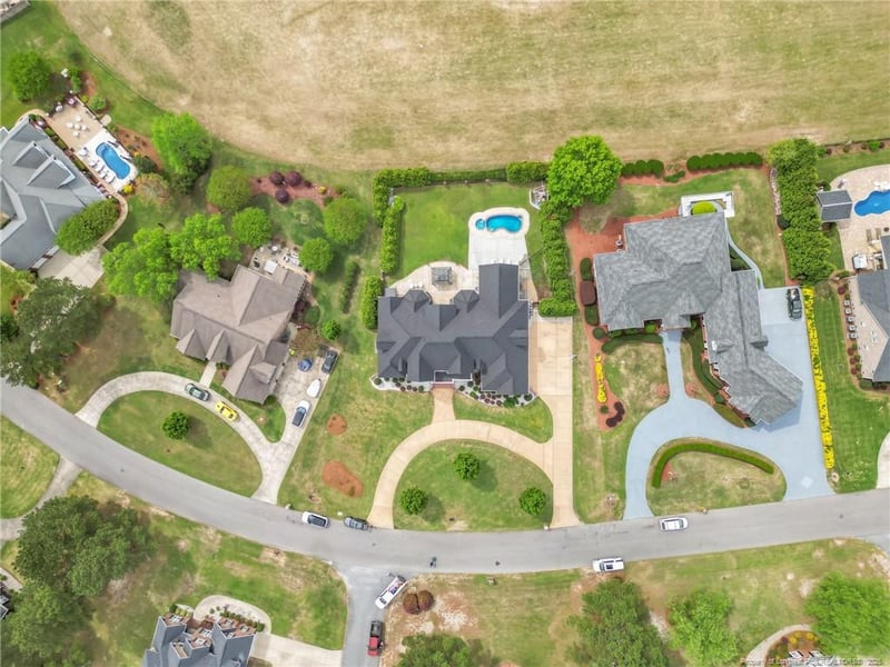 Listing details for 1105 Wild Pine Dr, Fayetteville, NC 28312 : $15,000 Use As You Choose Incentive! Welcome to your Baywood dream-custom built with timeless style & space to truly live. This 6,540 sq ft executive home offers 5 bedrooms, 4 full and 3 half baths, and a seamless blend of elegance and comfort. The grand 2-story formal living room makes a statement with 30-ft ceilings and beautiful arched windows overlooking the saltwater pool, spa, and golf course. The kitchen is thoughtfully designed with a gas Jenn-Air range, granite countertops, island, ice maker, and double ovens. The main level primary suite includes a sitting room/office, fireplace, spa-like bath, and an oversized walk-in closet. You'll also find a formal dining room, cozy den with fireplace, Carolina room, sunroom, and wet bar. Upstairs offers 3 ensuite bedrooms, a spacious loft, large rec room with built-in bar, 4th fireplace, half bath, and flex space. One bedroom features a stunning custom closet with built-ins and a unique shoe display. 3-car garage, 2025 roof, 2 tankless water heaters, no HOA, no city taxes.