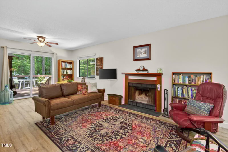 Listing details for 111 Hidden Valley Dr, Chapel Hill, NC 27516 : Come to check-out this sweet townhome that sits on a quiet cul-de-sac beneath a canopy of mature hardwoods. It offers the serenity of nature with the convenience of town just minutes away. Enjoy peaceful views from every window, with plenty of space for gardening, quiet reflection, or simply unwinding by the goldfish pond. Birdwatchers will love the regular visits from feathered friends. This 2-bedroom, 1.5-bath home lives like a single-family residence, offering privacy and space including a sprawling 16x23 deck overlooking the wooded backyard. Located just 15 minutes from both vibrant Chapel Hill and Pittsboro, it combines rural tranquility with urban access. When previewing this home, take an extra minute or two to soak-in the hand painted mural that graces the living room wall. It conveys pure tranquility. This home offers a opportunity that combines natural peaceful retreat, super location with unbeatable price!