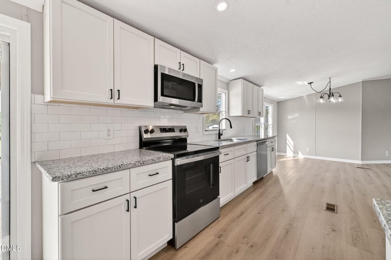 Listing details for 111 Old Williams Rd, Four Oaks, NC 27524 : Beautifully renovated double wide home offering the perfect blend of modern style and peaceful living! This bright and airy home features all-new finishes throughout, creating a fresh and inviting space you'll love coming home to. The open interior is complemented by brand new LVP flooring that flows seamlessly from room to room, adding both durability and contemporary appeal.