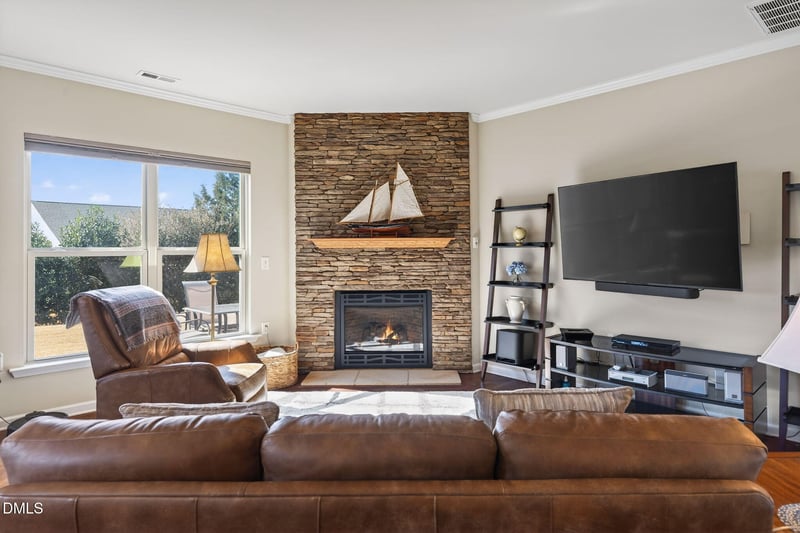 Listing details for 1114 Belvins Trace Dr, Durham, NC 27703 : Welcome to 1114 Belvins Drive in the highly desirable 55+ community of Carolina Arbors in Durham! This popular Abbeyville floorplan offers 2 bedrooms plus a versatile flex space ideal for an office or hobby room. The warm and inviting kitchen features a gas range, an elevated dishwasher for easy loading, and generous counter space. The anchor of the easy and open living space is the gorgeous stone fireplace.Spacious primary suite with tray ceiling. Primary bath features a large walk-in shower with a bench, plenty of cabinets and drawers with the large double vanity, water closet. Natural light abounds and you can take advantage of that and still have privacy with the custom cordless up and down cellular blinds. Relax in the spacious 3-season porch with Eze-Breeze vinyl panels, designed for versatility and comfort. The adjustable wall system easily transitions from open-air enjoyment to a screened or enclosed setting, extending your living space through multiple seasons. Carolina Arbors offers resort-style amenities and a vibrant lifestyle with activities to keep you young at heart. Low-maintenance living at its best!