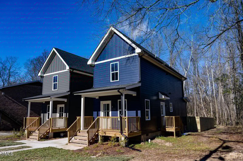 Listing details for 1129 Elmo St, Durham, NC 27701 : This new construction home is designed for the modern minimalist who values intentionality over excess. Listen to your favorite podcast while enjoying your pour-over coffee on the front porch. Sunlight graces the monochrome elegance of the kitchen during the day. Details matter, soft-touch shaker cabinetry meets crisp white quartz, and a seamless tile backsplash is the backdrop to your in-season fruit display. The primary suite is on the main level, offering an en-suite bathroom with a tiled shower. Neutral 12 mil LVP flooring anchors a brilliant white canvas that's waiting for your plants to be displayed. Dash to downtown Durham and enjoy local restaurants, festivals, and entertainment. Whether you are logging in from your dedicated home office, treating yourself to a local breakfast spot, or making the quick 15-minute ride to RTP, this location is your competitive advantage.