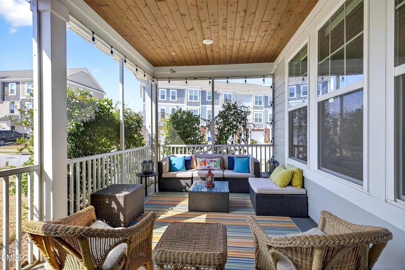 Listing details for 113 Brush Hill Ln, Holly Springs, NC 27540 : Welcome to effortless one-story living in the sought-after 2018 Market community of Holly Springs. This beautifully designed ranch home features 10-foot ceilings, an open layout, and abundant natural light throughout. The spacious kitchen boasts quartz countertops, a large center island with seating, a gas cooktop, wall ovens, stainless steel appliances, under-cabinet lighting, and a striking glass tile backsplash; perfect for everyday living and entertaining. The inviting gathering room offers a gas fireplace with a custom mantle and windows on either side, creating a bright, welcoming space. The primary suite features two generous walk-in closets and a well-appointed bath, including a walk-in shower with bench seating, double vanity, and private water closet. Enjoy the oversized screened porch with direct access to the driveway, ideal for relaxed evenings or casual grilling. Situated on one of the largest lots, this home also features a rear-entry two-car garage, ample parking, LVP flooring, crown molding, wainscoting, and smart-home technology. Low monthly HOA dues cover lawn care--mowing, trimming, edging, and landscaping plus access to a community pool, playground, and dog park so that you can enjoy the home without the upkeep.