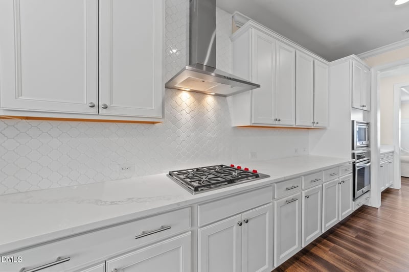 At the heart of the home is a chef's dream kitchen, featuring a premium Wolf cooktop, ultra-quiet JennAir dishwasher, and upgraded quartz countertops with an elegant marble-like design. A custom butler's pantry offers both style and functionality--ideal for entertaining and everyday organization.