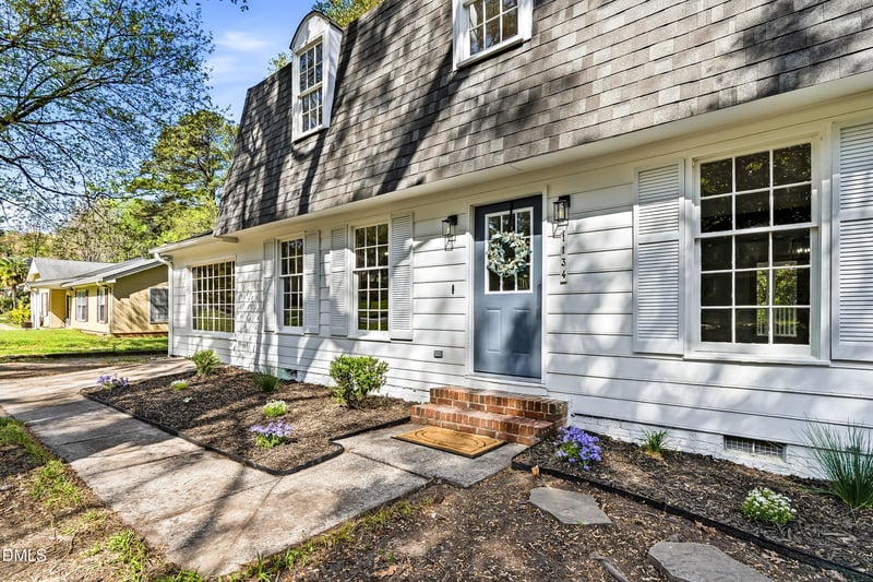 Listing details for 1134 Manchester Dr, Cary, NC 27511 : Charming Dutch Colonial in the Heart of Cary | Fully Renovated | Designer Finishes Welcome to 1134 Manchester Dr. where timeless architecture meets thoughtful, high-end design. Featuring 3 bedrooms and 3 bathrooms, this move-in ready home has been professionally renovated with a refined blend of eighteenth-century inspiration and modern luxury. Inside, you'll find fresh interior paint, luxury vinyl plank (LVP) flooring, updated lighting, and carefully curated finishes throughout. The chef's kitchen showcases quartz countertops, custom cabinetry, new stainless steel appliances, craftsman-style open shelving, and elegant hardware--perfectly designed for both everyday living and entertaining. The home offers a spacious formal dining room and a sun-drenched breakfast nook overlooking a beautifully maintained yard--ideal for gatherings, morning coffee, or peaceful afternoons at home. Upstairs, the primary suite features a large walk-in closet and a serene, light-filled atmosphere. The fully renovated bathrooms include a walk-in tiled shower and a charming clawfoot tub beneath skylights, creating a spa-like retreat with classic character. The bright and airy living room provides generous space for relaxing or hosting, filled with natural light and enhancing the home's warm and inviting feel. Step outside to a private, manicured backyard with ample room for play, gardening, or entertaining. A large detached storage building offers exceptional flexibility--perfect for a workshop, hobby space, or potential in-law suite conversion. Located in the one of the most desirable neighborhoods in the heart of Cary, 5 minutes from downtown, Fenton, shopping/dining and so much more; this home combines historic charm, designer finishes, and modern upgrades in one exceptional property.