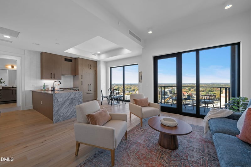 Listing details for 115 Morris St #2010, Durham, NC 27701 : Welcome to The Novus - Durham's premiere new high rise condominium! Open concept space and full length glass maximize the spectacular views. Waterfall edge countertop, integrated cabinet front appliances, and large patio-high end finishes throughout create an air of sophistication. This highly amenities building includes a pool, hot tub, pickleball court, gym, club room, dog park, outdoor theater, and golf simulator among other wonderful features. This unit comes with one dedicated parking spot.