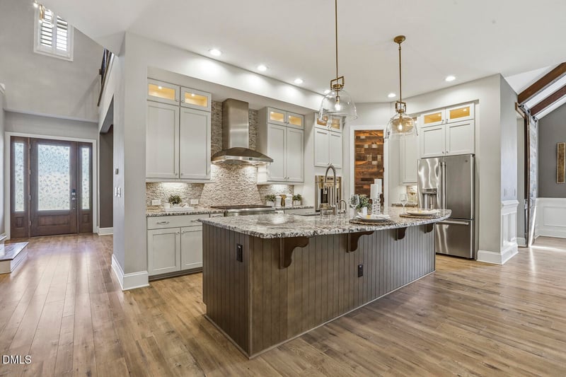 Listing details for 115 Sterling Chapel Way, Chapel Hill, NC 27517 : As you step inside, you're immediately drawn to the grand light fixtures and rich wood doors and ceiling beams that bring warmth and character to the space. Moving into the heart of the home, the gourmet kitchen is designed for hosting, featuring a built-in wine fridge, a spacious pantry, and chef-level stainless steel appliances. Just beyond, the living area extends seamlessly outdoors to the fully fenced yard. This outdoor oasis boasts a fireplace for chilly evenings and a fire pit perfect for roasting s'mores under the stars. The low-maintenance yard is thoughtfully equipped with a gas line running to the fireplace, grill area, and fire pit, all surrounded by mature trees that create a private, peaceful retreat. Back inside, the primary bedroom on the main floor offers a serene escape and the perfect place to unwind, complete with its own fireplace and an oversized walk-in shower. Upstairs, the versatile loft provides countless possibilities--from a home office to a workout space. The home truly maximizes its potential with a finished attic, enhanced by an added window and mini-split system, making it ideal for a craft room, studio, or tucked-away gift-wrapping space. Comfort and peace of mind come standard with a Generac generator. All of this is tucked away at the end of a quiet dead-end street, just minutes from shopping and dining.