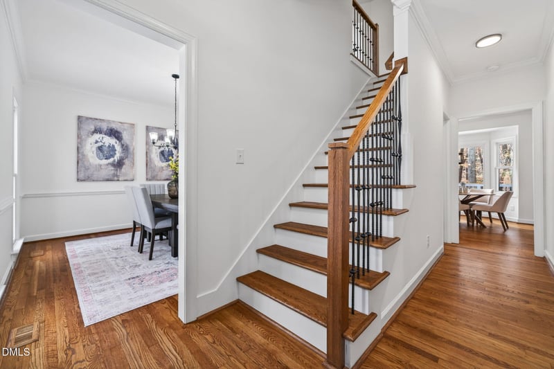 Listing details for 11505 Burberry Dr, Raleigh, NC 27614 : Set in one of North Raleigh's most sought-after neighborhoods, this beautifully renovated 4-bedroom traditional home is the rare opportunity buyers wait for and act on. Completely remodeled from top to bottom, the home features all new siding, windows, roof, and doors, offering peace of mind and true move-in readiness from day one. Inside, timeless craftsmanship shines with stunning trim throughout, hardwood floors across the main level, stairs, and upper hallway, and plush new carpet in all bedrooms. The heart of the home is the inviting family room, anchored by a fireplace and breathtaking reclaimed wood built-in shelving. a space designed for both quiet evenings and effortless entertaining. The eat-in kitchen is equally impressive, featuring stainless steel appliances, quartz countertops, and backsplash.