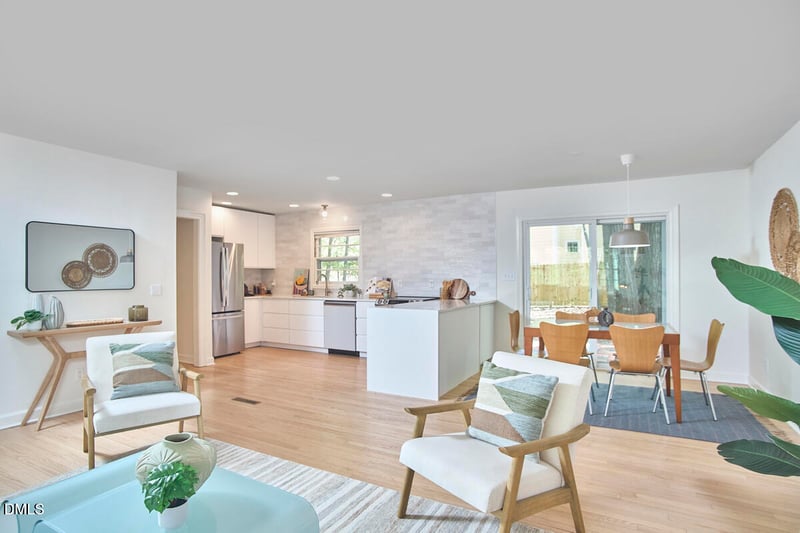 Listing details for 117 Dixie Dr, Chapel Hill, NC 27514 : This thoughtfully updated split-level home offers flexible living in a setting that's quietly one of Chapel Hill's most special pockets. A 2022 kitchen renovation reimagined the main living level, while the original kitchen was relocated to the lower level, creating a fully functional secondary space with dishwasher, plumbing in place for a refrigerator with icemaker, and wiring ready for an electric range and over-range microwave. The layout allows for a variety of uses, including guest space, extended living, or future rental potential. A removable custom cabinet beneath the upstairs kitchen peninsula can be taken out to accommodate a ventless washer and dryer combo, with electrical already in place behind the cabinet if a future owner chooses to make that change. Two of the three bathrooms have been fully renovated, including a just-completed primary bath in 2026 and the hall bath in 2023. Hardwood floors and tile run throughout the main and upper levels, with LVP installed downstairs in 2021. Additional updates include a new gas pack in 2021, water heater in 2022, and extensive plumbing and electrical improvements, including the addition of an EV charger in the 2-car carport. A new washer and dryer were installed in 2025. Interior paint has been refreshed throughout, and the exterior siding and front door were just painted in 2026. Outside, the fenced backyard includes a newly built wood fence (2025), a storage shed, and a lovely brick patio that's genuinely a great spot to spend time. Beyond the property itself, the neighborhood is what truly sets this home apart. Tucked into a wooded, established area just minutes from UNC-Chapel Hill, this community blends convenience with easy access to a park, trails, a lake, and green space. From the house, it's an easy walk to a neighborhood park with a playground, picnic shelter, and trails that lead up to one of Chapel Hill's most unexpected features, a wooded ridge often referred to as the neighborhood's ''mountain.'' Along the way, a basketball court sits tucked among the trees. In the other direction, also within walking distance, Lake Ellen offers access for kayaking and small boats for residents through a modest optional annual HOA.