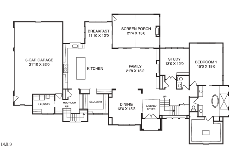 The heart of the home is a chef's dream kitchen, featuring a stunning 60-inch Wolf gas range, premium appliances, custom cabinetry, and an oversized island. A separate scullery/pantry enhances both functionality and elegance. The open-concept family room, breakfast area, and screened porch create a warm, inviting atmosphere with views of the surrounding acreage.