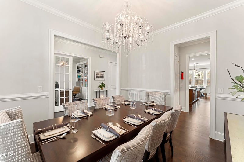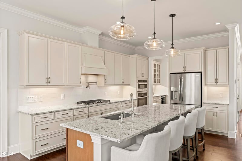 The main level welcomes you with a wide front porch and grand entry, flanked by a private home office for work-from-home ease, with custom built-ins and a formal dining room perfectly positioned for hosting. The heart of the home unfolds into an expansive family room with built-ins, flowing effortlessly into the gourmet kitchen and breakfast area.