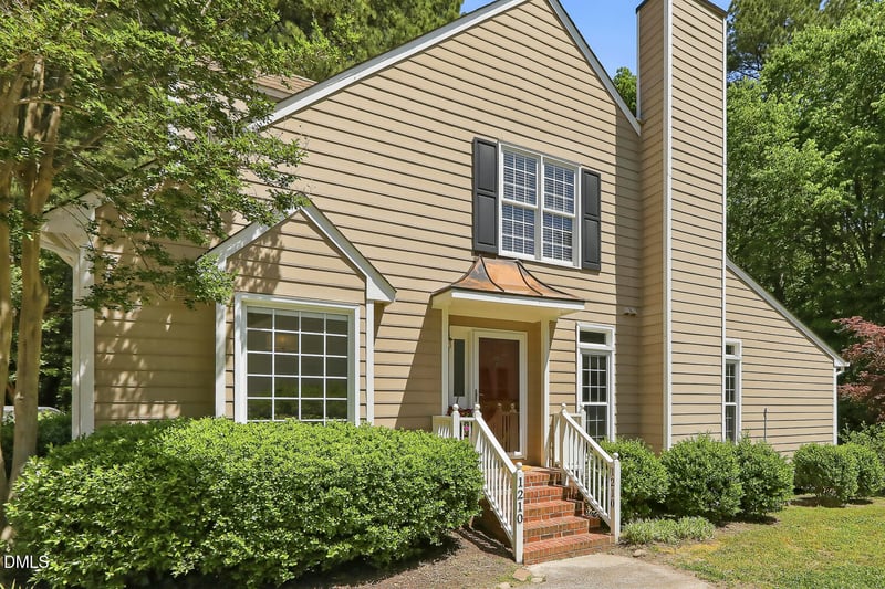 Listing details for 1210 Cranebridge Pl, Chapel Hill, NC 27517 : Tucked into a quaint neighborhood nook, this quietly charming, lovingly renovated townhome offers a warm and inviting retreat with thoughtful updates throughout. Standout features include a first-floor primary suite, a bright sunroom, sun-drenched living spaces, and a private backyard that backs to peaceful Army Corps land.