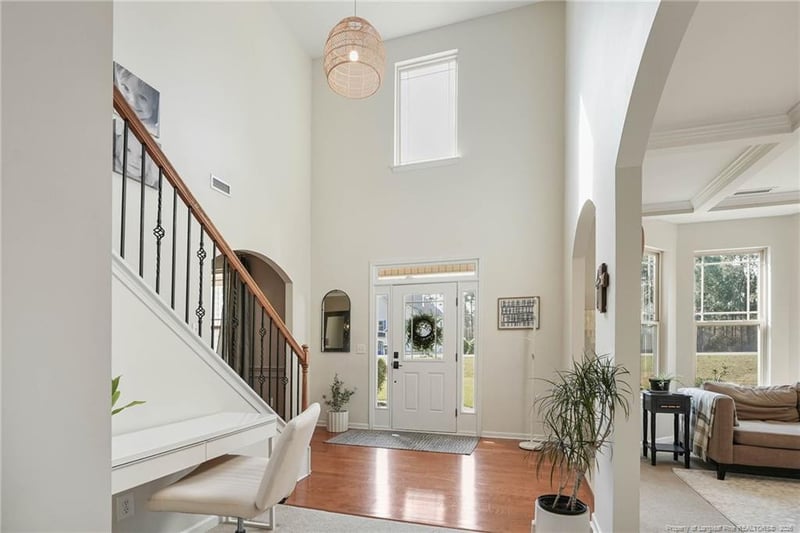 Listing details for 1219 Coachman Way, Sanford, NC 27332 : Stunning 5 bedroom home on a large fenced lot in the desirable Carolina Lakes Community. Over 4100 sq.ft. of living spaced that is so functional, it checks all the boxes. Two story grand entryway welcomes you. Step into the coffered ceiling formal dining room and the soaring 2 story open living room featuring massive windows creating tons of natural light throughout the home. Large kitchen with huge island, a breakfast nook, and tons of counter space is any chef's dream. Large walk-in pantry and dedicated coffee bar are added features to this inviting space. Downstairs includes a dedicated guest suite with full bathroom. Two staircases lead you upstairs, adding so much convenience and functionality to this home. Additional 3 guest bedrooms are found upstairs along with the primary bedroom. Bedrooms are large with huge closets and high ceilings. Primary bedroom includes oversized tray ceiling, large windows, and a reading nook. Huge primary en suite bathroom with separate soaking tub, dual vanities and dedicated shower. Primary closet is large and holds all your storage needs. Backyard is large, flat and very usable. An oversized patio, fence, and pergola make it perfect for all those backyard summer BBQ's. Community features golf course, large boatable lake, smaller fishing/kayak lakes, pool, walking trails, marina with a beach and dock, clubhouse, guard gated with 24/7 security, and basketball courts. This community has mature trees, playgrounds, and lake access for all members of the community. There is nothing like it in the Ft. Bragg area.