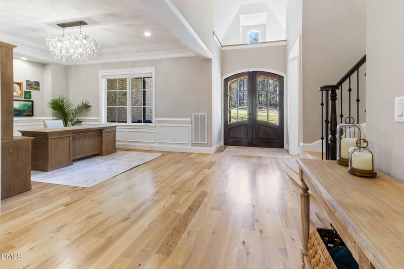 The main-floor guest suite features a zero-entry glass shower and walk-in closet--perfect for multi-generational living. Complete with a flagstone front porch, circular driveway, wrought iron exterior accents, gym, office, theater, and flex room--this extraordinary property seamlessly blends luxury, comfort, and thoughtful design in a private yet convenient location.