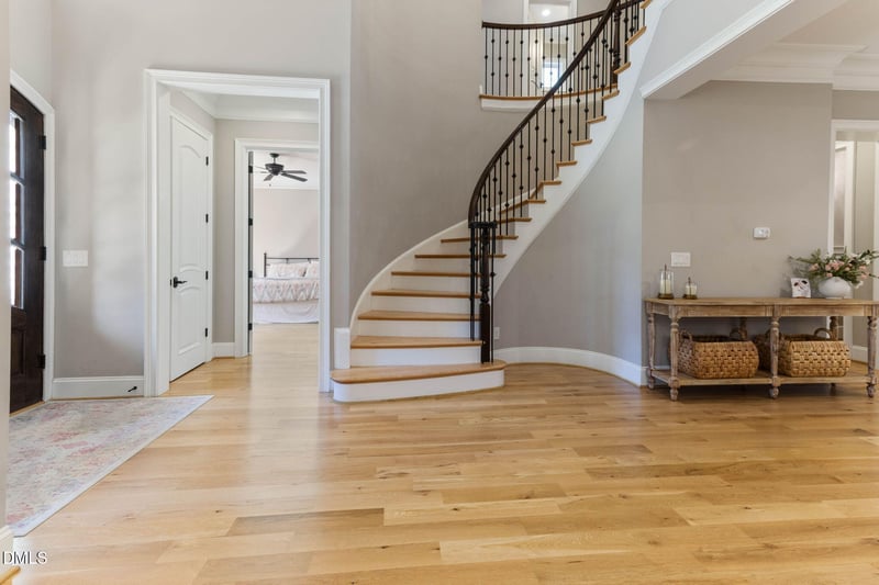 Designed with impeccable craftsmanship and high-end finishes throughout, this home showcases hardwood floors across most of the residence, 12' ceilings in the family room, 10' ceilings throughout the main level, 8' custom doors, heavy molding, and a dramatic curved staircase.