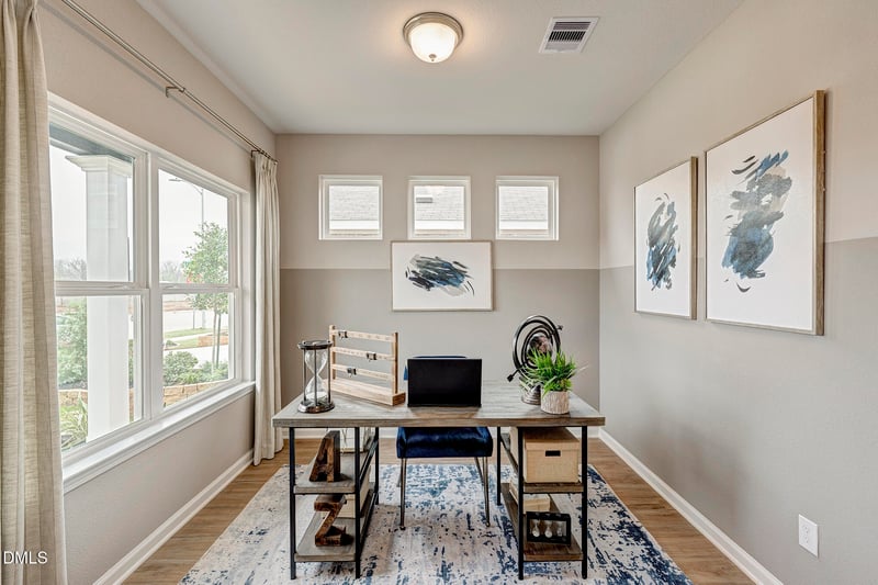 Experience the ease of one-level living in this beautifully designed ranch-style home. Thoughtfully crafted with an open-concept layout, the seamless flow between the kitchen, dining, and living areas creates an inviting space perfect for everyday living and entertaining alike. A versatile flex room at the front of the home offers the ideal setting for a home office, study, or additional living space.
