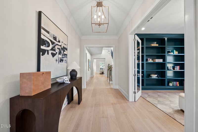 Listing details for 1221 Dixie Trl, Raleigh, NC 27607 : Custom Luxury Build by DJF Builders-Nestled in the heart of ITB Raleigh. Featuring Main Level Primary Suite and Private Study. Wide Plank Hardwoods throughout main living. Kitchen offers Reverse Tray Ceiling, Custom Painted Cabinetry to Ceiling, Large Quartz Island with Barstool Seating, Professional Grade Thermador Appliance Package with Built In Fridge! Opening to the Informal Dining Flooded with Natural Light! Primary Suite with Hardwoods and Massive Walk in Closet! Primary Bath offering a His and Her Vanities w/Quartz Tops, Linen Towers, Zero Entry Tile to Ceiling Surround Walk in Shower, Freestanding Tub & Oversized Windows! Family Room Custom Surround Fireplace with Flanking Built-ins & Accent Windows & Large Sliding Doors to the Covered Flagstone Porch. 3 En Suite Bedrooms Upstairs, Oversized Recreational Room, Rear Detached Garage with Covered Breezeway Entry!