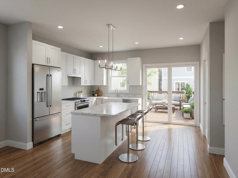 Listing details for 1222 Merrick St, Durham, NC 27701 : Rare to-be-built opportunity in a prime Durham location just steps from NCCU. This contemporary new construction combines modern style, smart design, and exceptional investment potential. The main level features a spacious primary suite with a beautifully designed en-suite bath showcasing a custom tiled shower, large niche, and transom window. Enjoy the convenience of first-floor laundry, low-maintenance LVP flooring throughout, and a sleek eat-in kitchen complete with stainless steel appliances, tiled backsplash, and a stunning quartz waterfall peninsula.