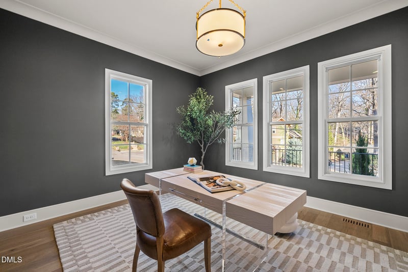 Listing details for 1225 Dixie Trl, Raleigh, NC 27607 : Custom build by DJF Builders-Nestled in the heart of ITB Raleigh. Featuring Main Level Private En Suite Guest and Study. Wide Plank Hardwoods throughout main living. Kitchen offers Custom White Cabinetry to Ceiling, Large Quartz Island with Barstool Seating , Designer Pendants, & Professional Grade Thermador Appliance Package with Built in Fridge! Opening to the Informal Dining with Ample Natural Light! Primary Suite with Hardwoods and Tons of Window Overlooking the Backyard and Primary Bath offering a Custom Dual Vanity w/Quartz Top & Designer Sconce Lighting, Huge Tile to Ceiling Surround Walk in Shower with Bench and Large Walk in Closet with Custom Built-ins. Family Room Custom Surround Fireplace with Flanking Built-ins & Large Sliding Door to the Covered Porch. 2 Spacious Secondary Bedrooms Upstairs & Oversized Recreational Room with Hardwoods. Rear Detached Garage & Friend's Porch Entry!