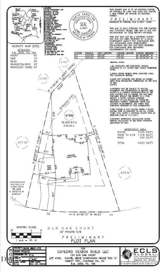 Listing details for 123 Bur Oak Ct, Pittsboro, NC 27312 : COMING SOON! We just broke ground on this lot with another beautiful custom build by Gaylord Design Build. Construction is underway, and you'll soon see a stunning new home start to take shape. The best part? There's still time to personalize it. You can select finishes and features that perfectly fit your style and lifestyle. Interested in making it yours? I'd be happy to set up a meeting with the builder to walk through options, selections, and the projected timeline. Brad-
