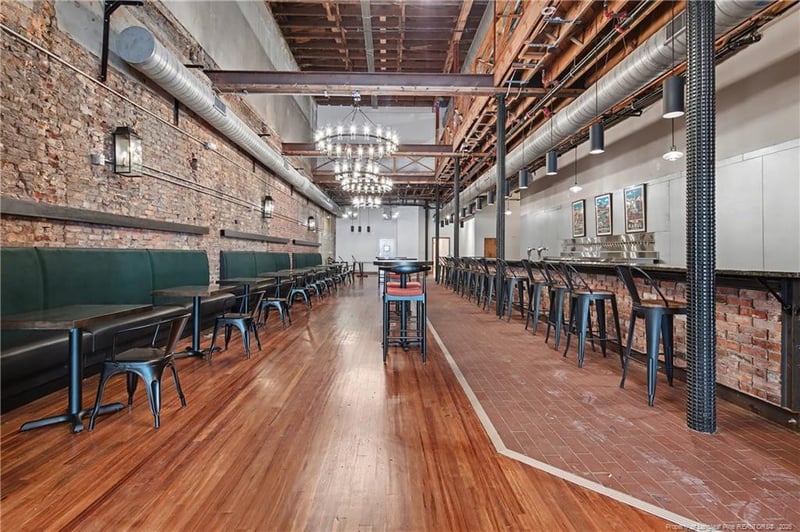 Listing details for 123 Hay St, Fayetteville, NC 28301 : Located in the heart of beautiful downtown Fayetteville, this commercial property benefits from strong foot traffic, vibrant surroundings, and excellent visibility! This unique space was originally built out for a brewery and is fully equipped with existing infrastructure, including walk-in coolers and a finished bar area. No brewery equipment remains. The open layout offers incredible flexibility for a variety of uses, whether you're launching a brewery, restaurant, or bar. There is also potential to develop an upstairs level into an additional bar or lounge area, creating expanded seating and an elevated guest experience. Beyond hospitality, the adaptable floor plan makes this property equally suited for conversion into creative office space or a modern workplace environment.