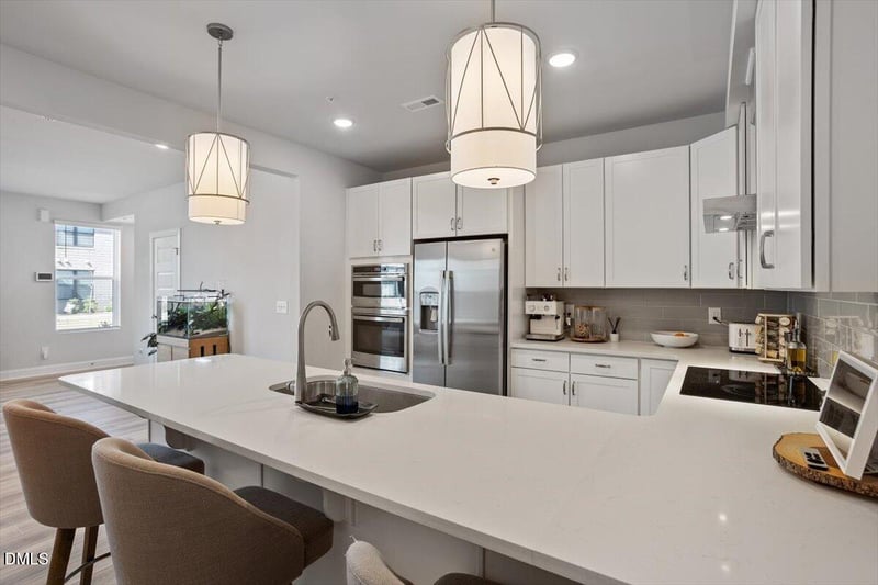 Listing details for 1234 Coach Station Al #101, Raleigh, NC 27601 : Welcome to this bright and thoughtfully designed end-unit condo offering easy, low-maintenance living. Natural light fills the home, while the spacious rear-entry one-car garage provides convenient parking and additional room for storage. The kitchen and breakfast area open into the main living space, creating a functional layout that works well for both daily living and casual entertaining. Upstairs, the expansive primary suite offers a relaxing retreat with a private bathroom and two walk-in closets for generous storage. The second floor also features a secondary bedroom and a flexible study space that opens onto a private deck. Shared green space right outside of the front door. Convenient location close to all the Downtown Raleigh has to offer.